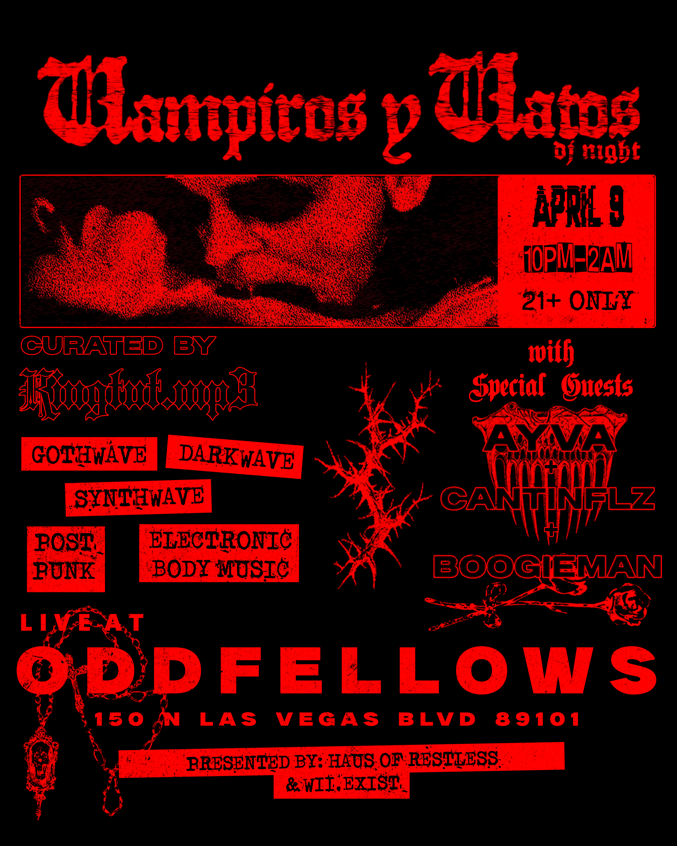 Vampire party playing goth wave, dark wave, synth wave post punk and more